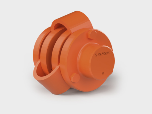 O acoplamento ACRIFLEX® AC é composto por dois cubos simétricos de ferro fundido cinzento, unidos por um jogo de correias planas fixadas aos cubos através de um flange parafusado.